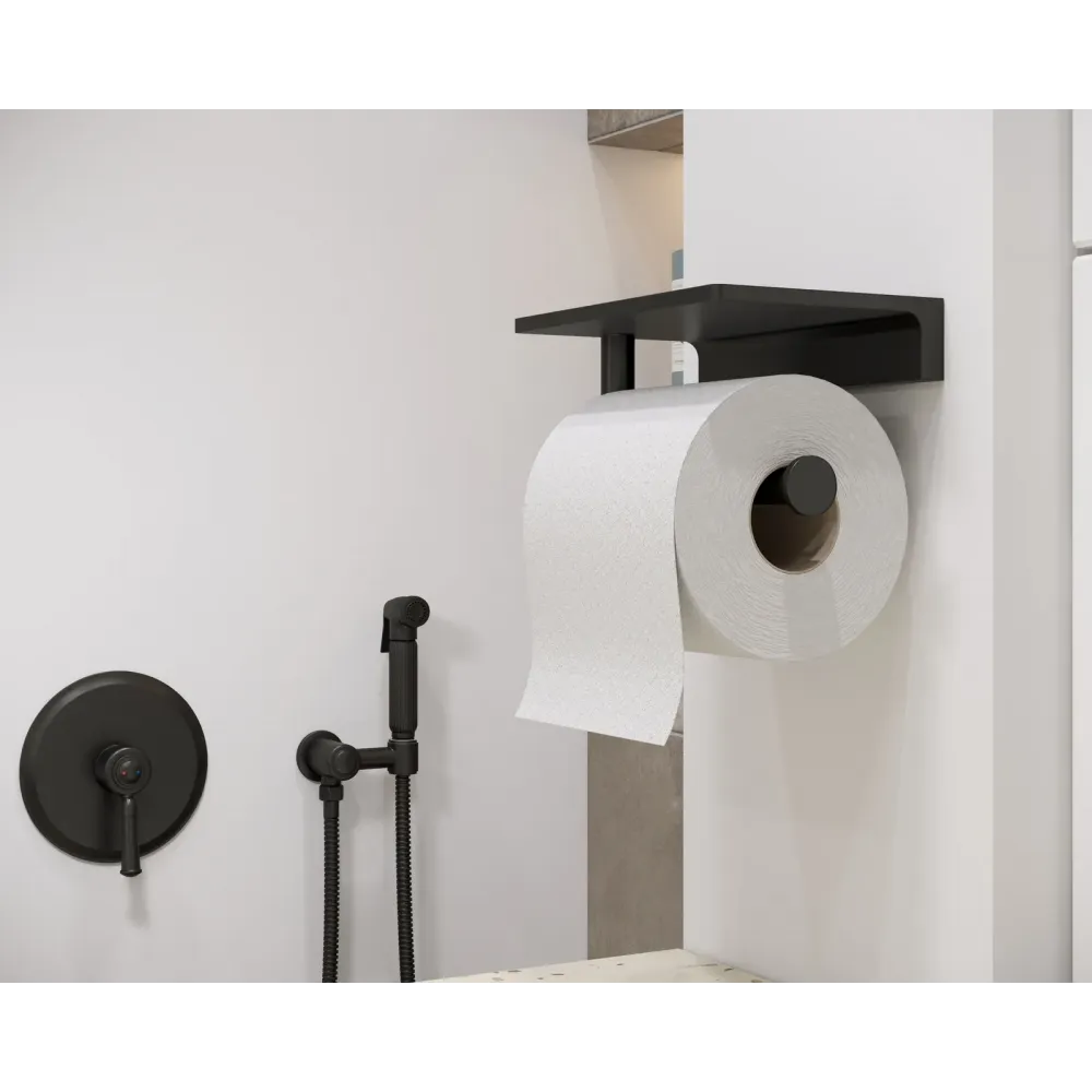 Бумагодержатель Timo Saona 13043 объединяет в себе держатель для туалетной бумаги и полку для телефона или освежителя воздуха.