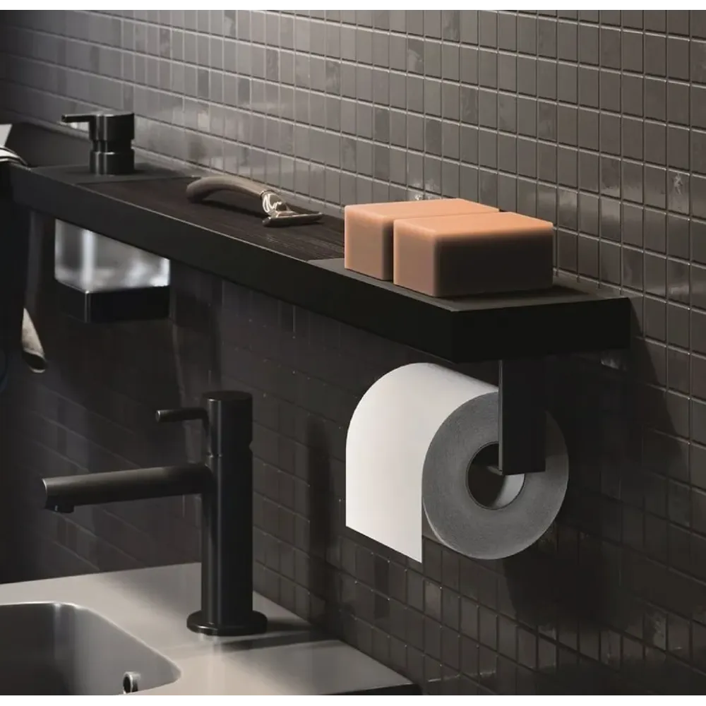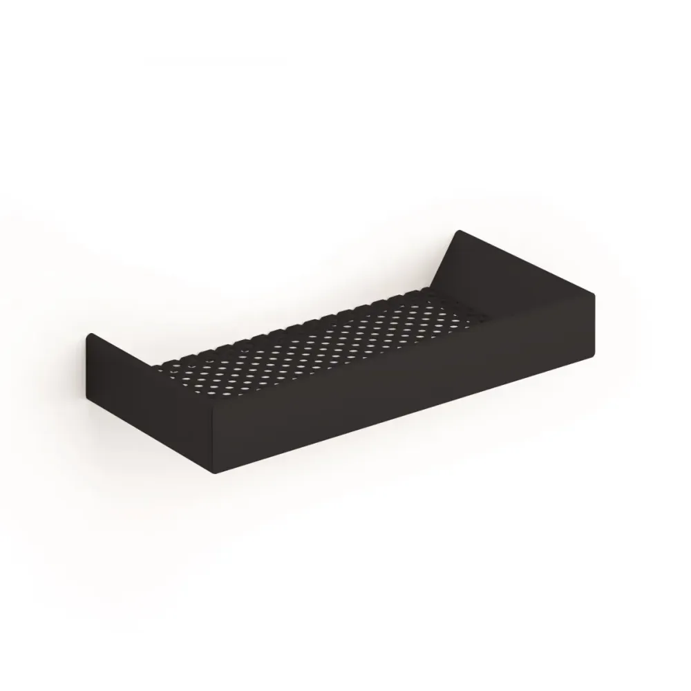 Выполнена в современном стиле, простые линии и черное матовое покрытие придают полочке изящный внешний вид.