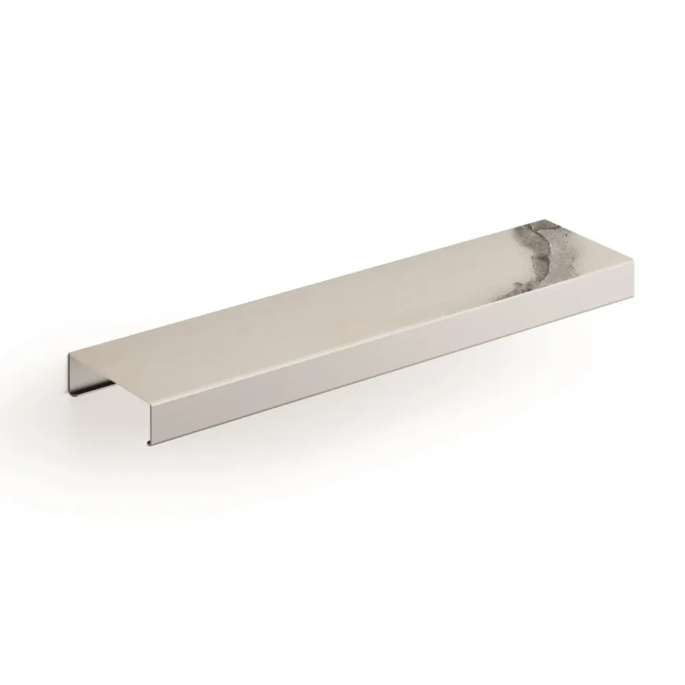 A8809MHW Модуль полочки 200мм для вставки в рейлинг INDA INDISSIMA BARRA нержавеющая сталь AISI 304, накладка HPL Calacatta, брашированная нержавеющая сталь