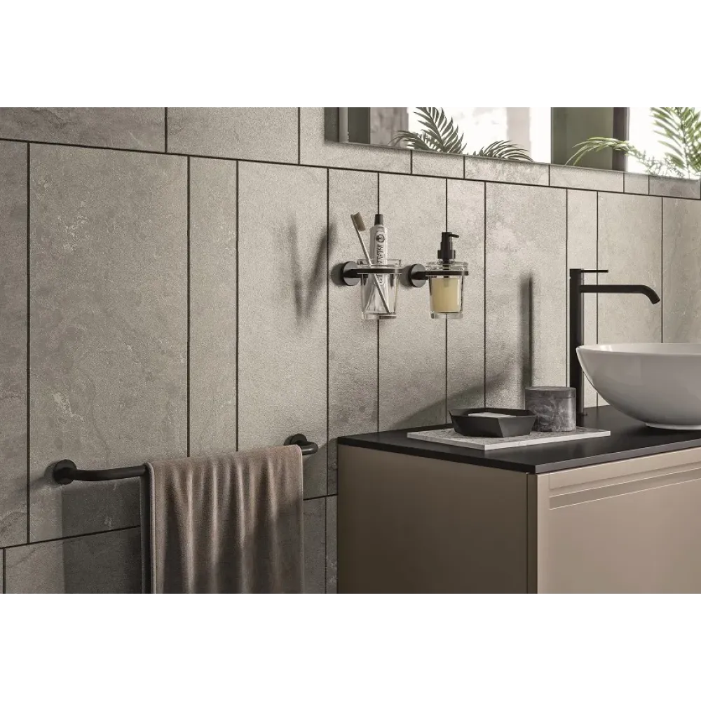 Выполнен в современном стиле, простые линии и черное матовое покрытие придают держателю изящный внешний вид.