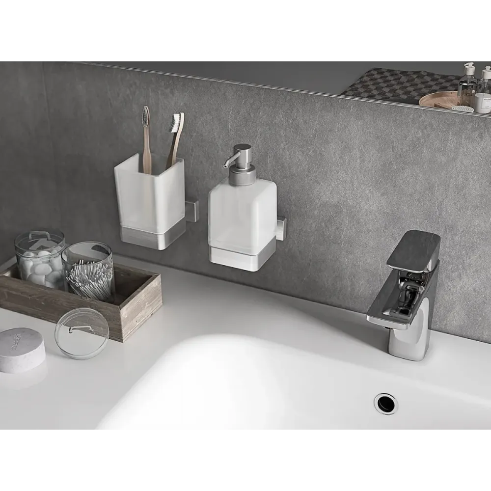 Стакан устанавливается на столешницу, не требуя монтажа на стену.