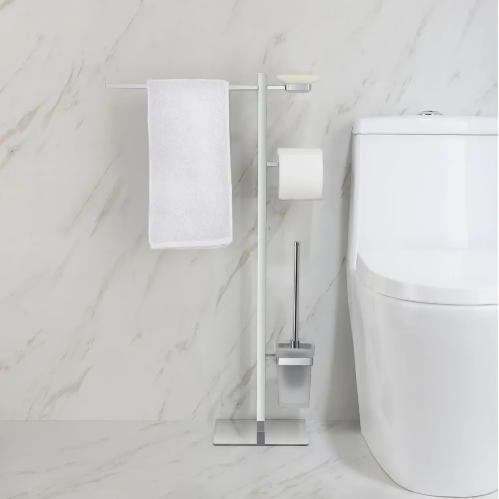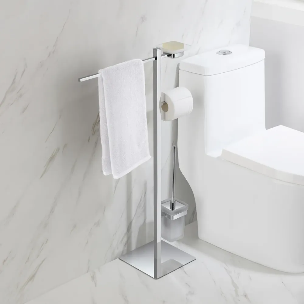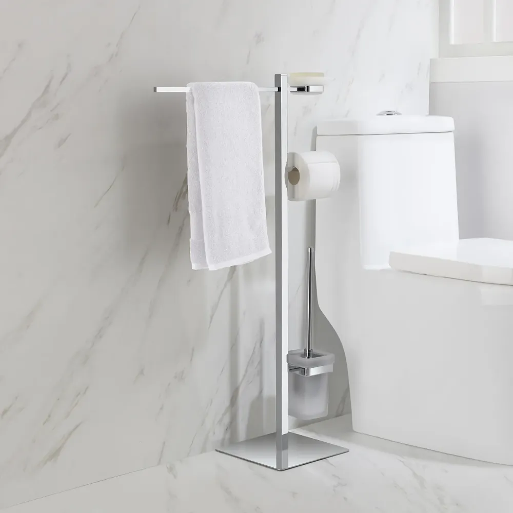 Напольная стойка Timo Selene 10085 объединяет в себе держатель для туалетной бумаги, ершик для унитаза с колбой, мыльницу и держатель для полотенца. Стойки для ванной комнаты выглядят стильно и удобны в эксплуатации.