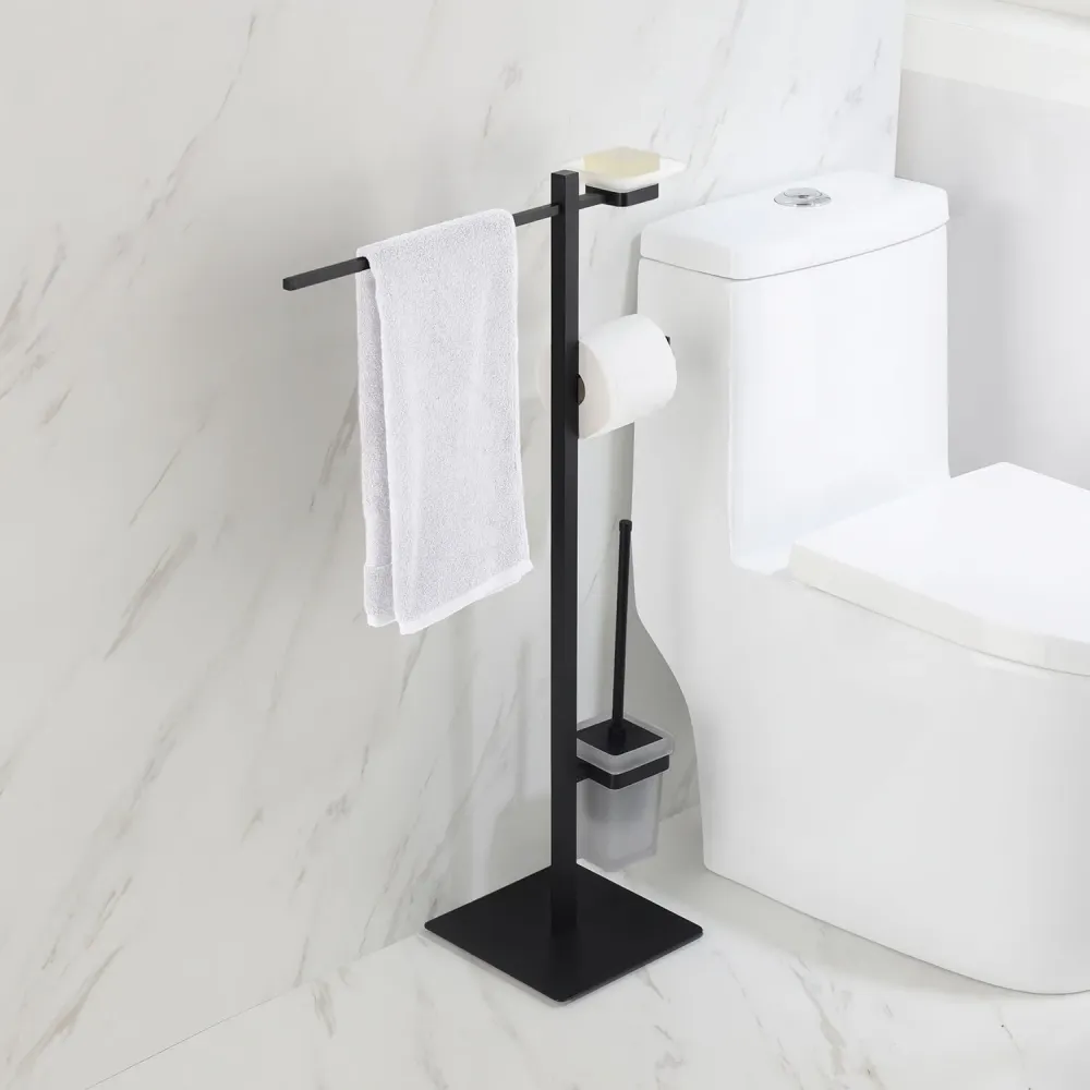 Напольная стойка Timo Selenе 14085 объединяет в себе держатель для туалетной бумаги, ершик для унитаза с колбой, мыльницу и держатель для полотенца. Стойки для ванной комнаты выглядят стильно и удобны в эксплуатации.