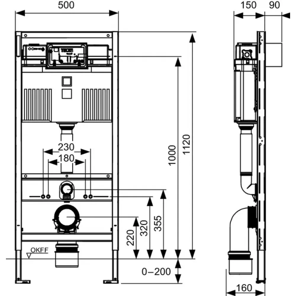 Технические характеристики TECE 9300302 TECEprofil UNI 2.0 Застенный модуль инсталляция со смывным бачком Uni 2.0, высота 1120 мм