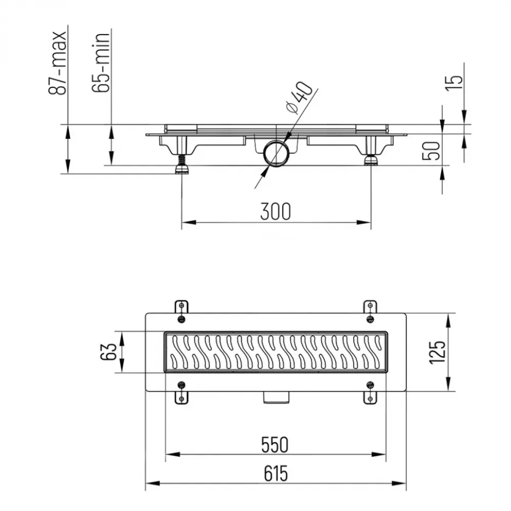 Минимальная высота монтажа – 65 мм, не требует масштабной заливки пола и сложной установки. Ножки регулируются от 65 до 87 мм.