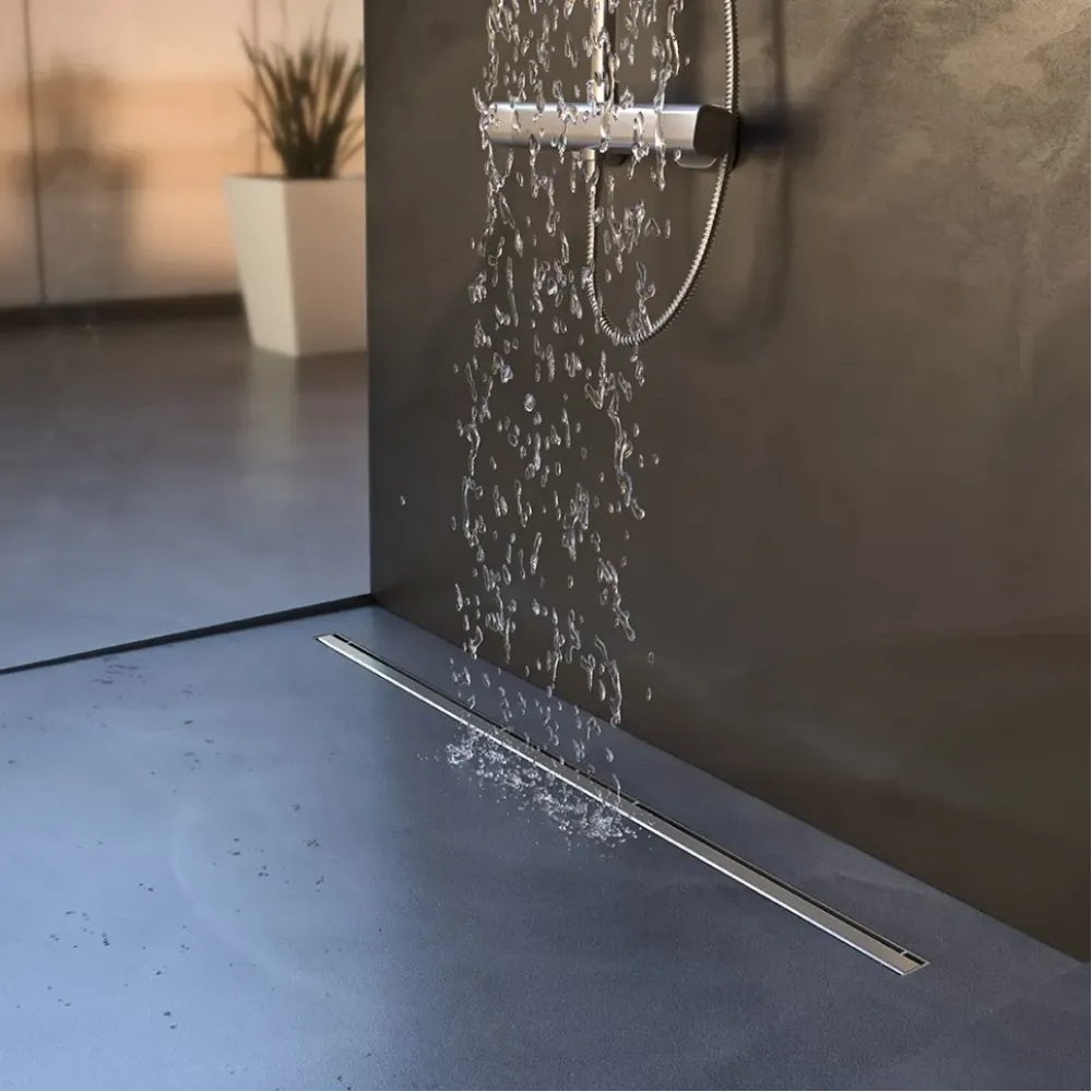 Щелевой лоток для душа SLIM LINE – ширина решетки всего 35 мм.