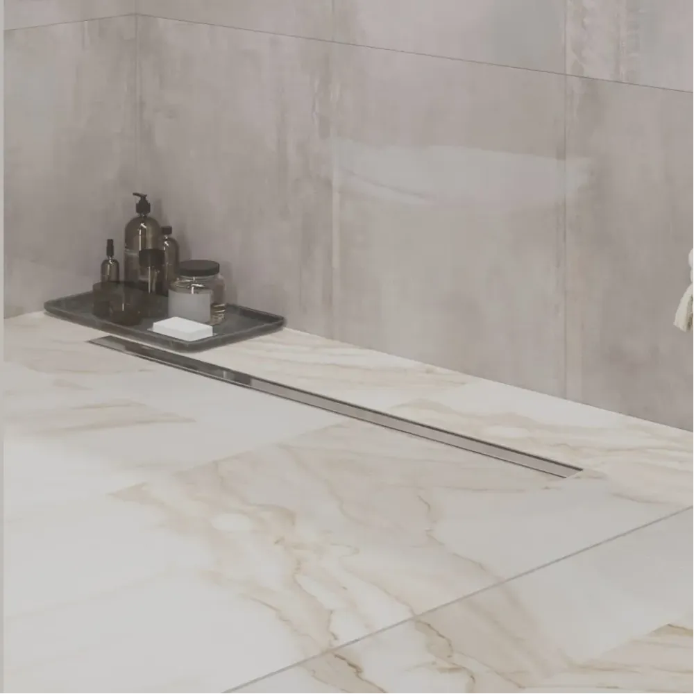 Лоток PAINI можно положить ровной стороной, а можно перевернуть и уложить на него плитку. Так получится максимально замаскировать слив воды.