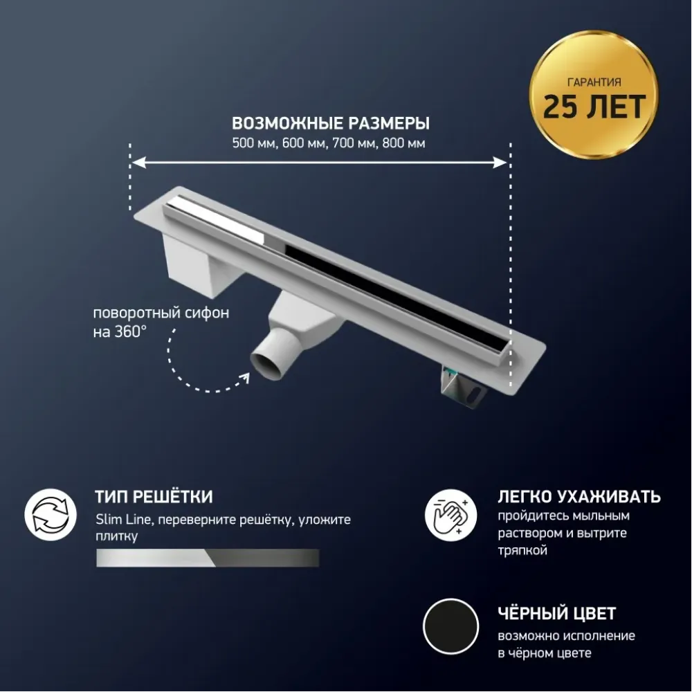 Размерный ряд лотков: 500, 600, 700 и 800 мм. Для любых размеров помещения.
