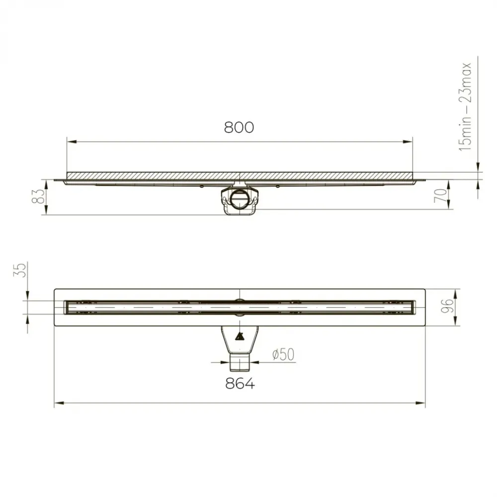 Щелевой лоток для душа SLIM LINE – ширина решетки всего 35 мм.