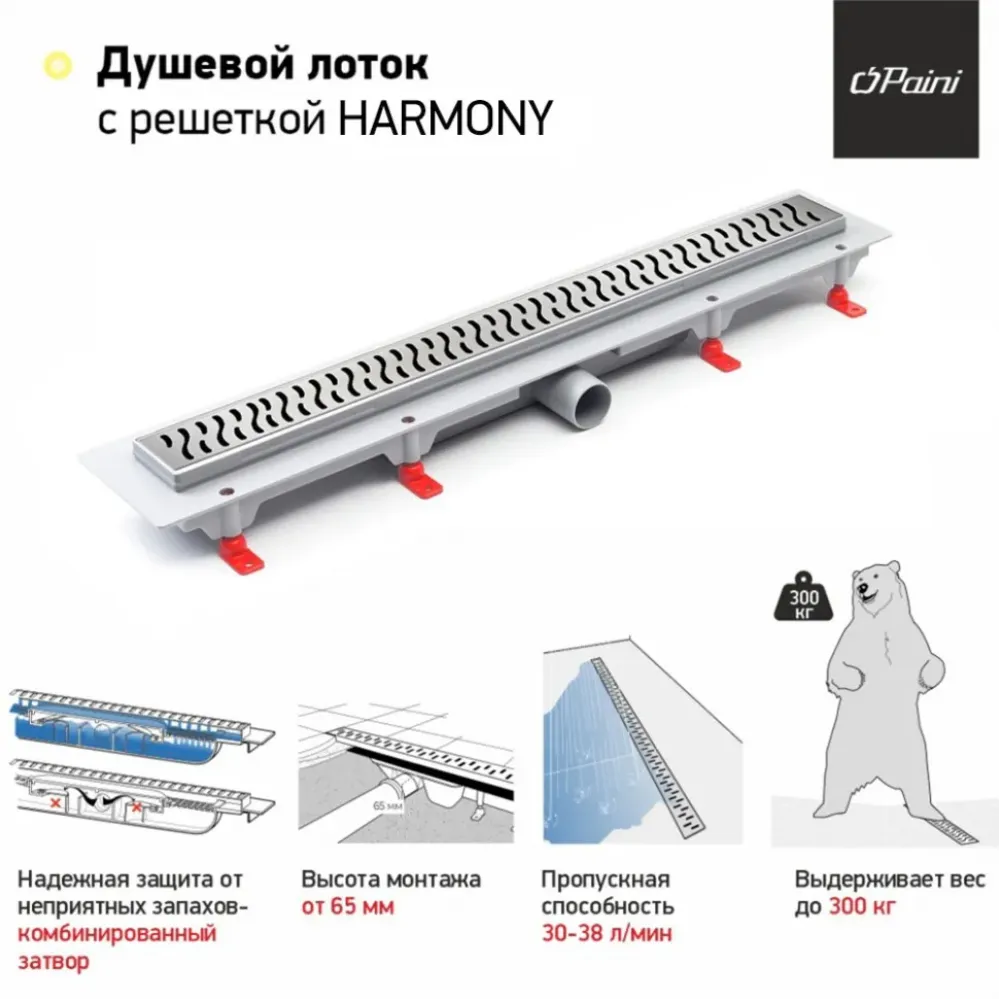 Пропускная способность от 30 до 37 л/мин в лотках "ПАИНИ" не позволит воде задерживаться в душевой.