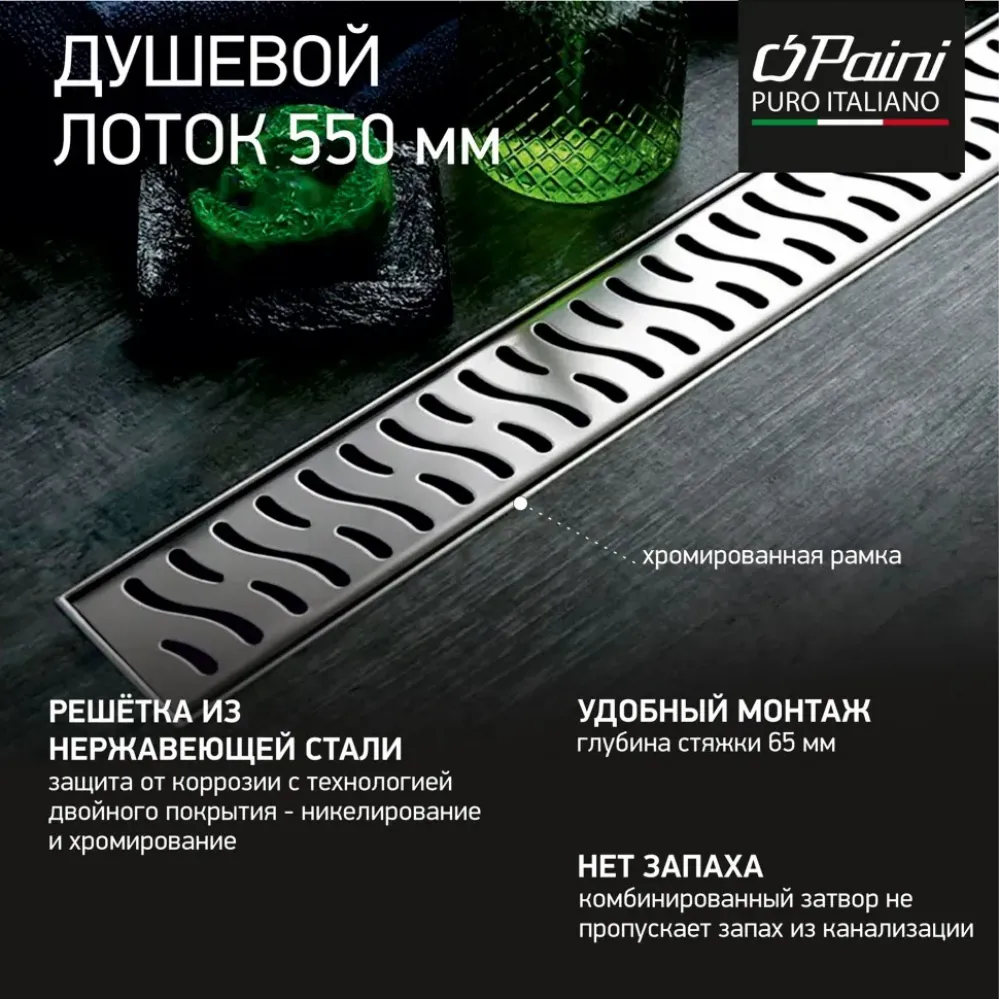 Безбарьерная среда в душевой – новый тренд, и душевой лоток с рамкой HARMONY от PAINI восхищает функциональностью и стилем. Рамка вокруг решетки усиливает конструкцию, что делает ее прочнее. Горизонтальный выпуск облегчает монтаж, трубы можно устанавливать по полу, что сэкономит бюджет. Благодаря конструктивным особенностям душевые лотки не требуют высокой заливки пола, что максимально упрощает установку. Покрытие, защищающее от механических и химических повреждений, продлевает срок службы.