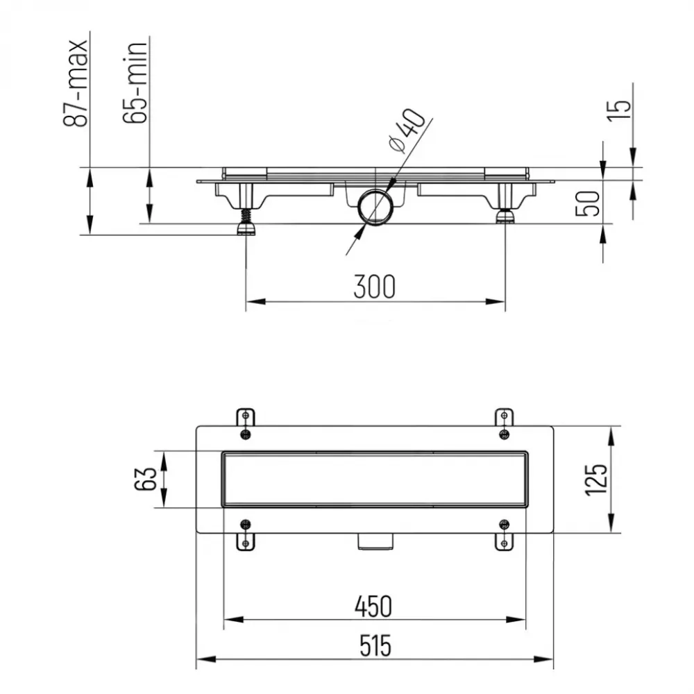 Минимальная высота монтажа – 65 мм, не требует масштабной заливки пола и сложной установки. Ножки регулируются от 65 до 87 мм.