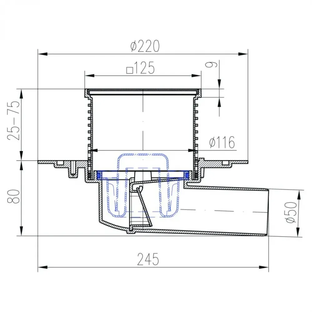 Компактный размер трапа – всего 125x125 мм, что позволяет оставить целостным дизайн пола.