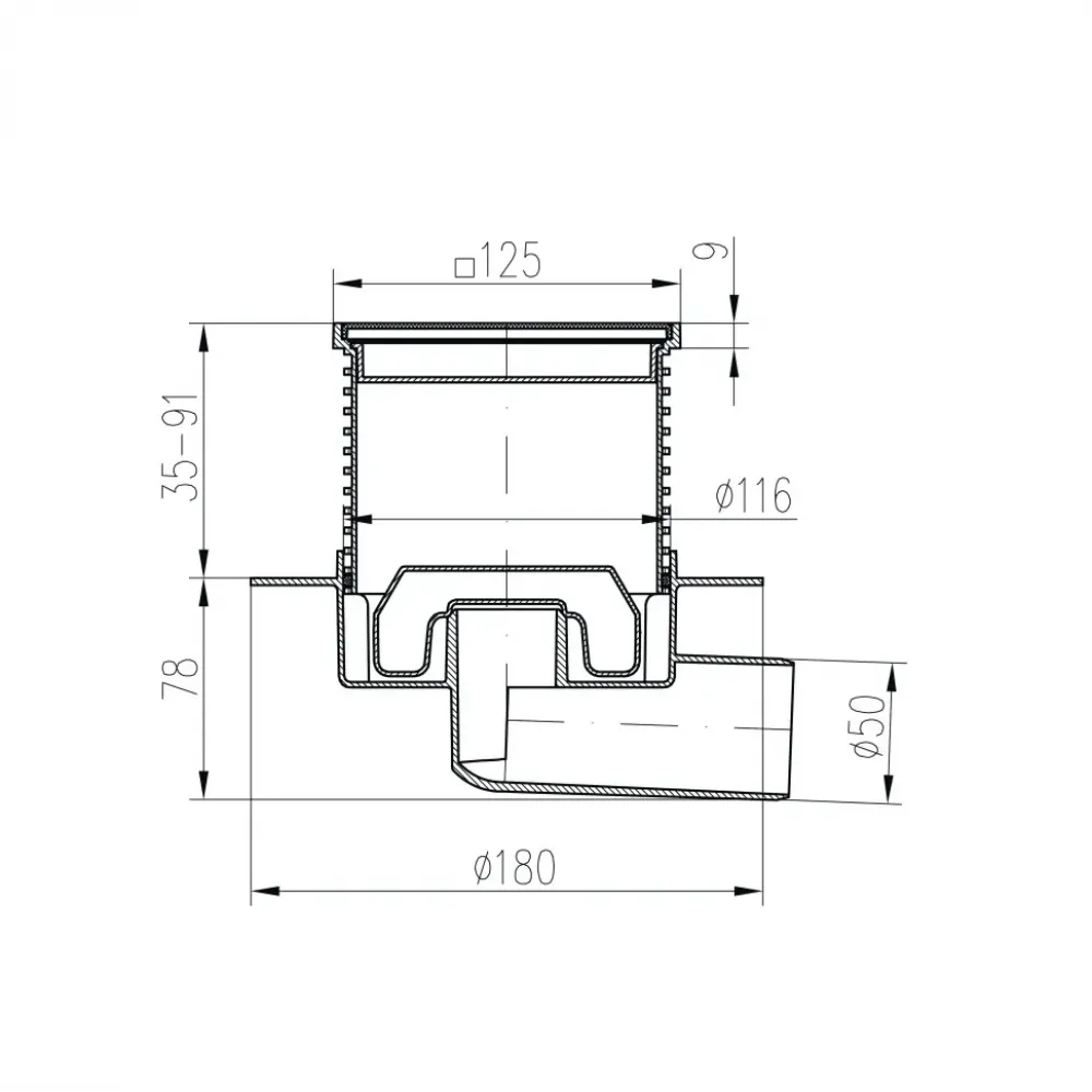 Компактный размер трапа – всего 125x125 мм, что позволяет сделать единый дизайн пола.
