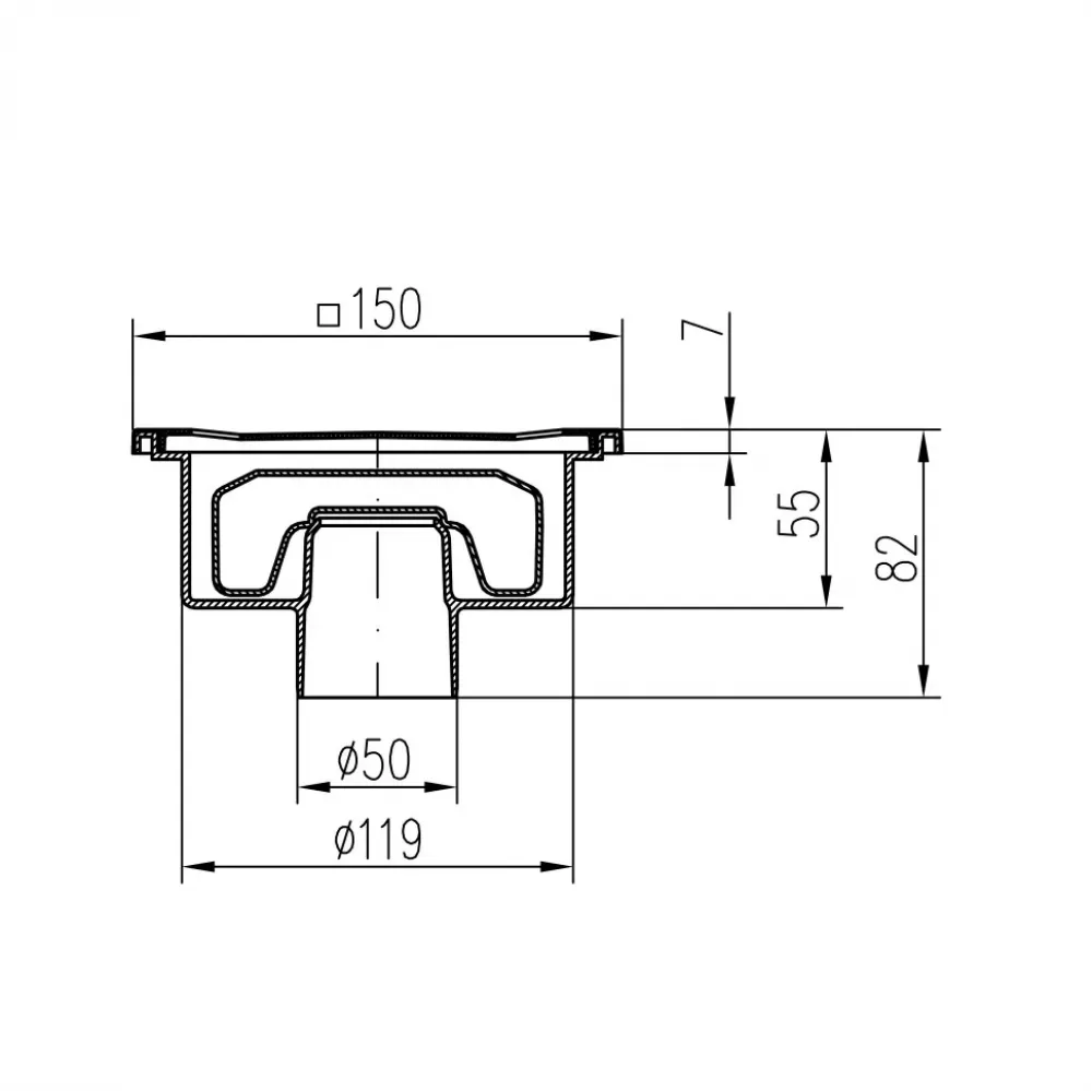 Компактный размер трапа – всего 150х150 мм, что позволяет оставить целостным дизайн пола.