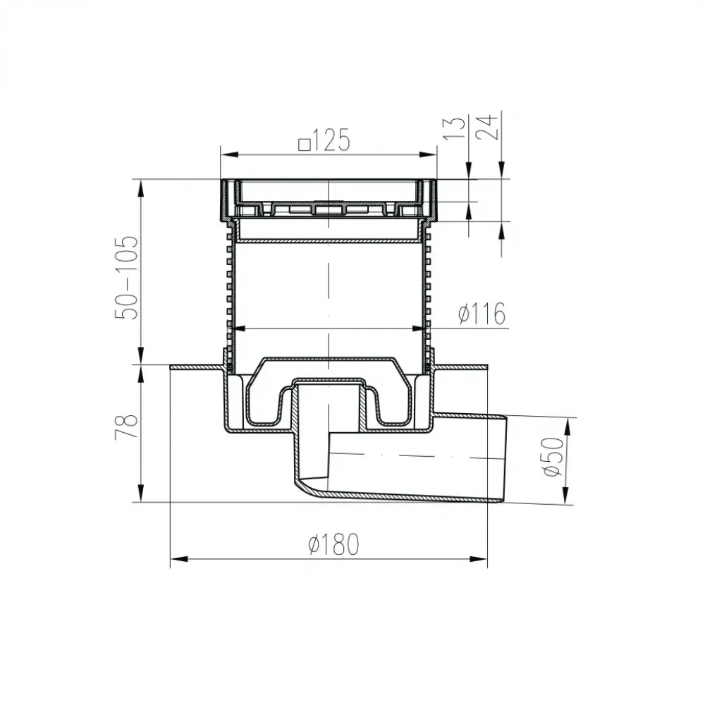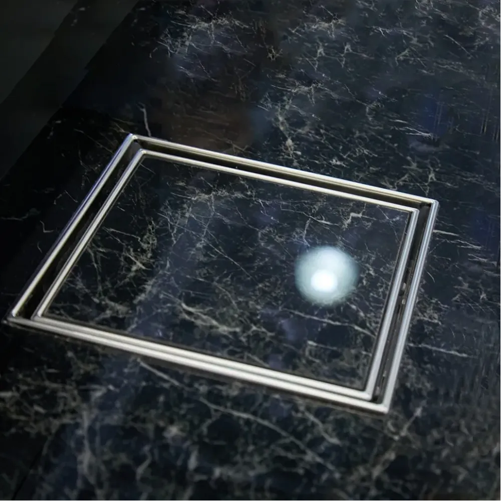 Размер трапа – всего 125x125 мм, в трап устанавливается плитка, что позволяет оставить целостным дизайн пола.