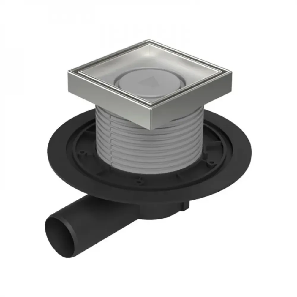 Компактный размер трапа – всего 125x125 мм, а конструкция практически незаметна на полу благодаря тому, что плитка устанавливается прямо в решетку.