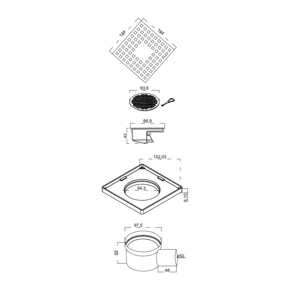| Диаметр слива раковины, мм5 | Длина16.5 | Длина решетки, см15 |