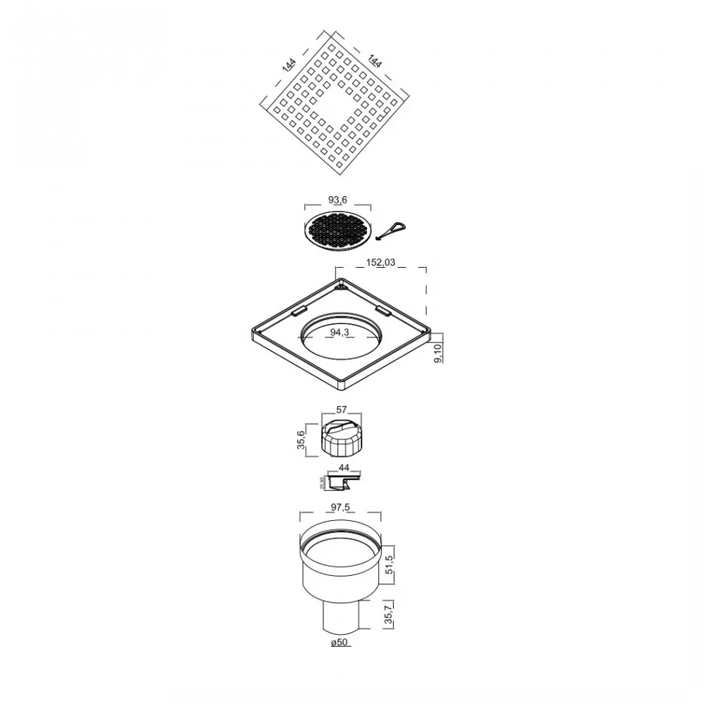| Диаметр слива раковины, мм5 | Длина15 | Длина решетки, см15 |