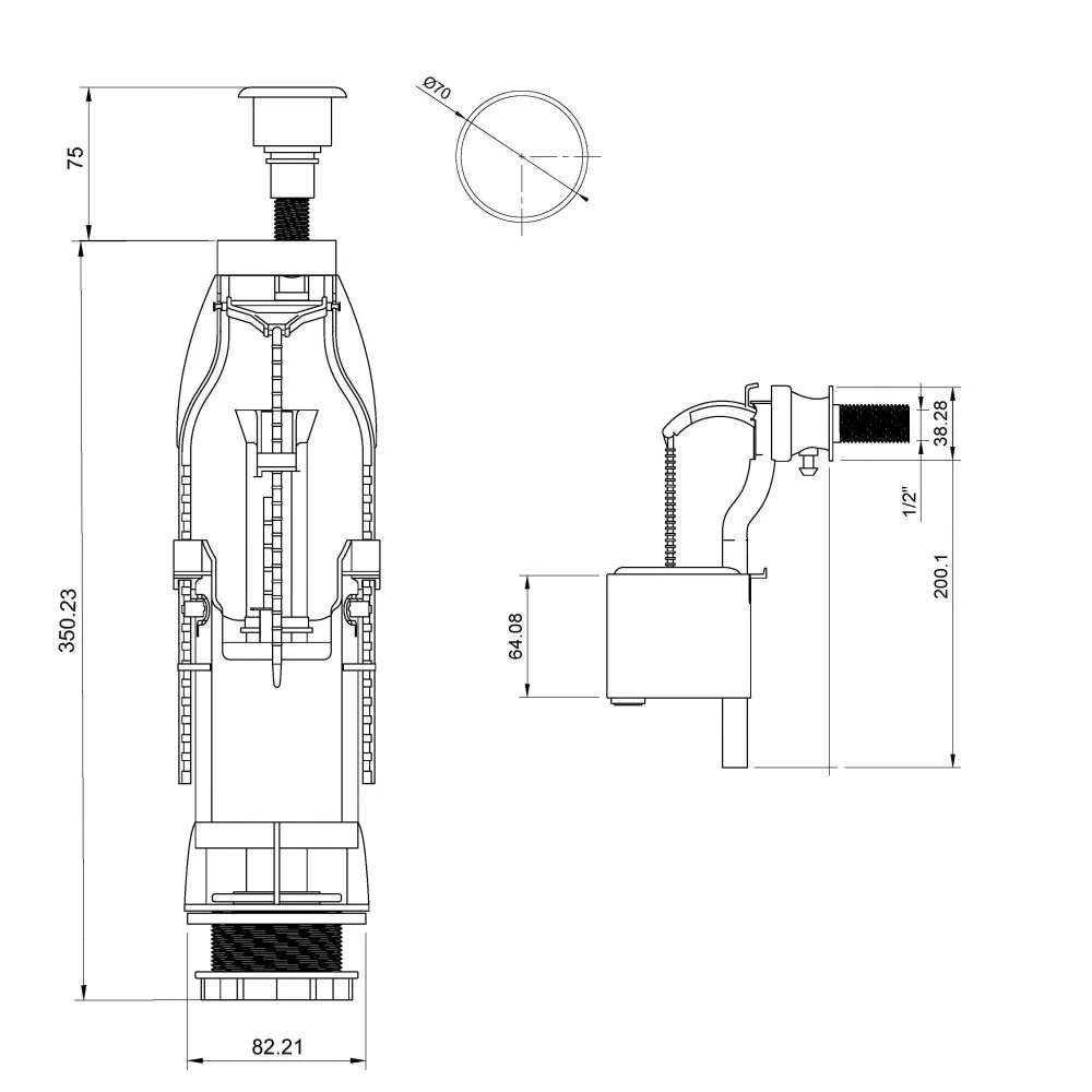 | Сливной клапан | однокнопочный |
