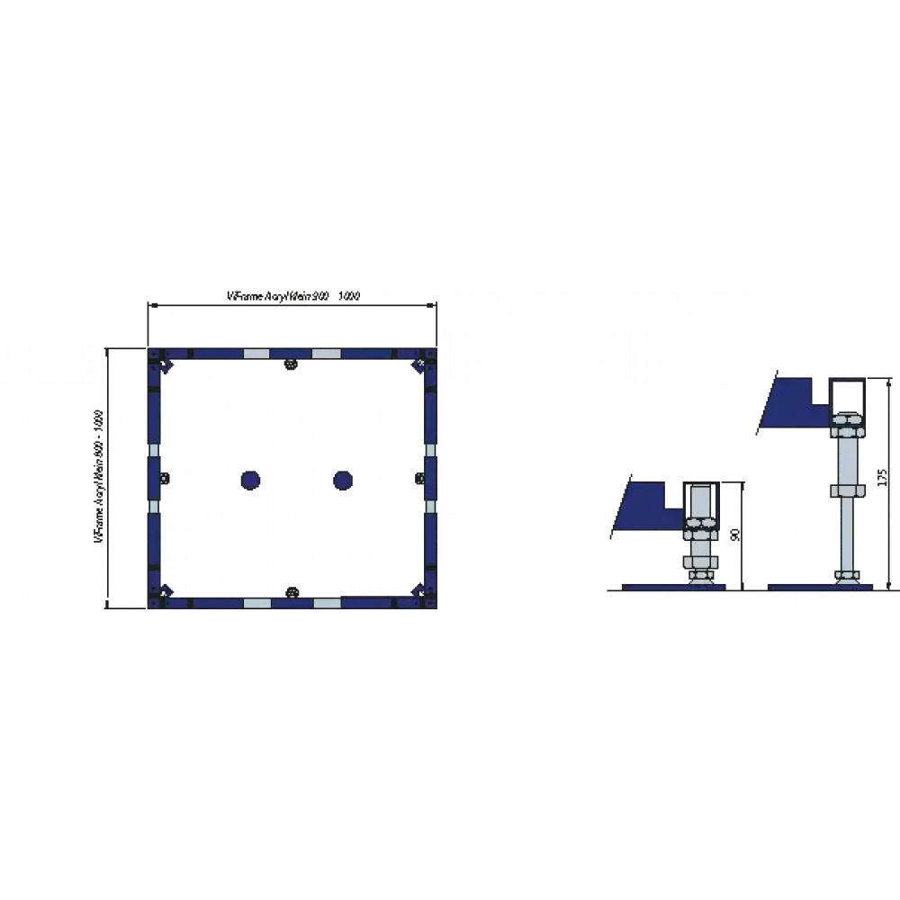 Технические характеристики Villeroy & Boch Аксессуары Монтажная рама ViFrame, для небольших душевых поддонов (до 1000 x 1000) из керамики или акрила, высота регулируемая 90-175 мм, вкл. 2 средние ножки, 400 x 820 x 100 mm U91412100