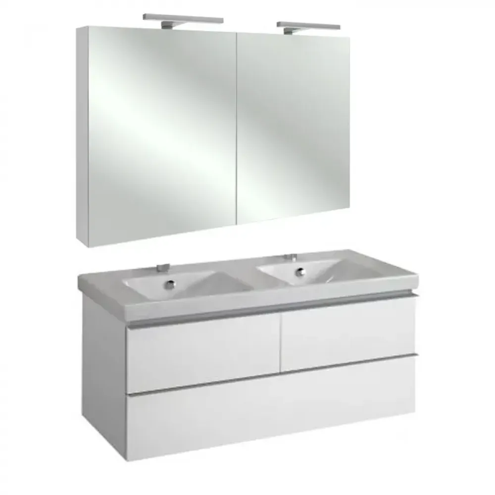 Комплект мебели для ванной Odeon Up 120 см, белый блестящий лак, 3 выдвижных ящика, с подсветкой, с подсветкой, подвесной монтаж E4730-00+EB798RU-G1C+EB892-G1C Jacob Delafon