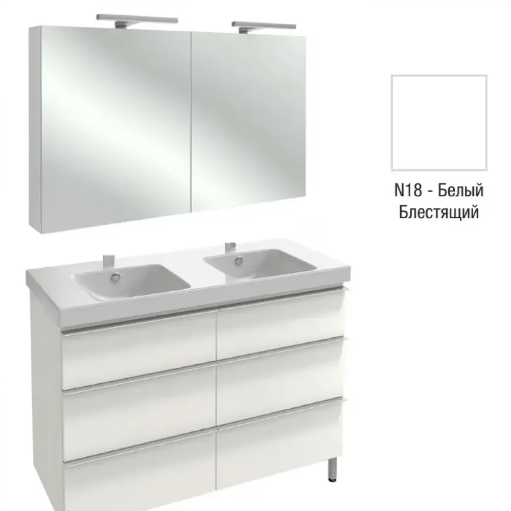 Комплект мебели для ванной Odeon Up 120 см, белый меламин, 6 ящиков 2 ящичка для аксессуаров, 2 зеркальные дверцы, подвесной монтаж, с подсветкой E4730-00+EB995-N18+EB798RU-N18 Jacob Delafon