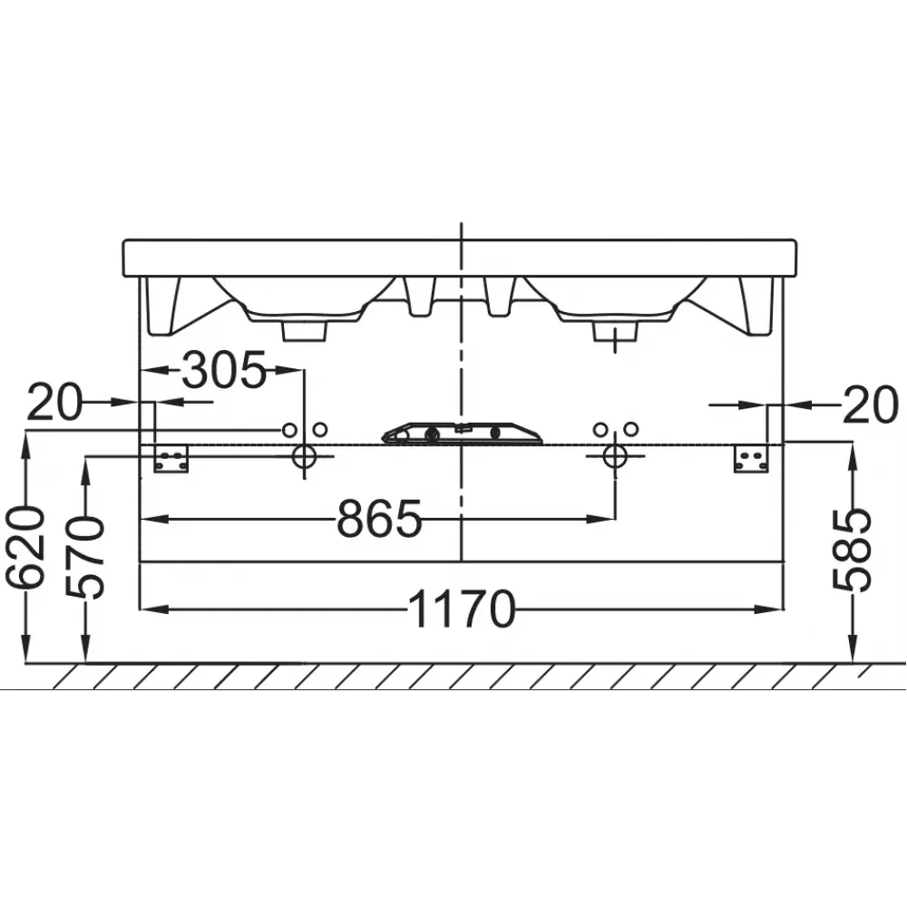 1 отверстие для смесителя, 3 дополнительных отверстия размечены