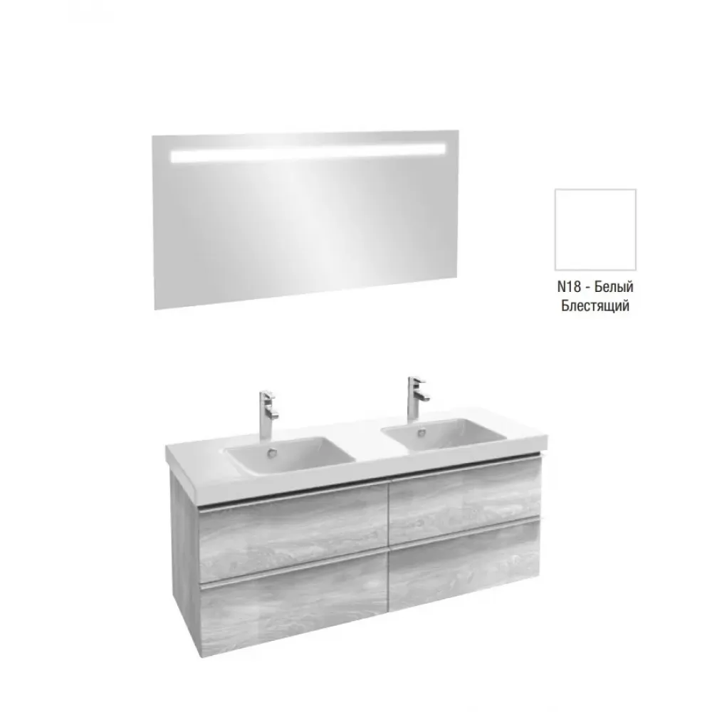Комплект мебели для ванной Odeon Up 140 см, белый, 4 выдвижных ящика, 1 отверстие для смесителя, с подсветкой, подвесной монтаж EB1420-NF+E4779-00+EB997-N18 Jacob Delafon