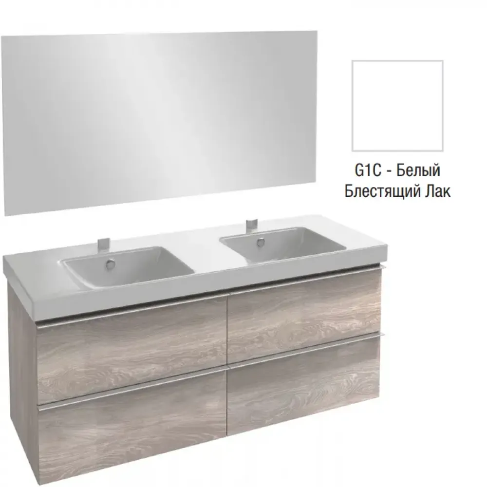 Комплект мебели для ванной Odeon Up 140 см, белый блестящий, 4 выдвижных ящика, двойная, полотно, подвесной монтаж E4779-00+EB1190-NF+EB997-G1C Jacob Delafon