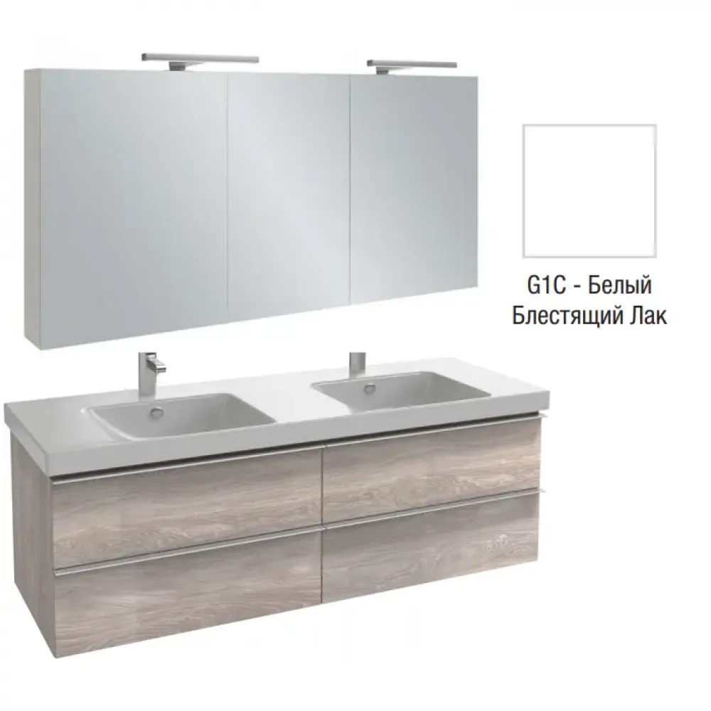 Комплект мебели для ванной Odeon Up 140 см, белый блестящий, 4 выдвижных ящика, с подсветкой, 3 дверцы, подвесной монтаж, с подсветкой E4779-00+EB789RU-G1C+EB997-G1C Jacob Delafon