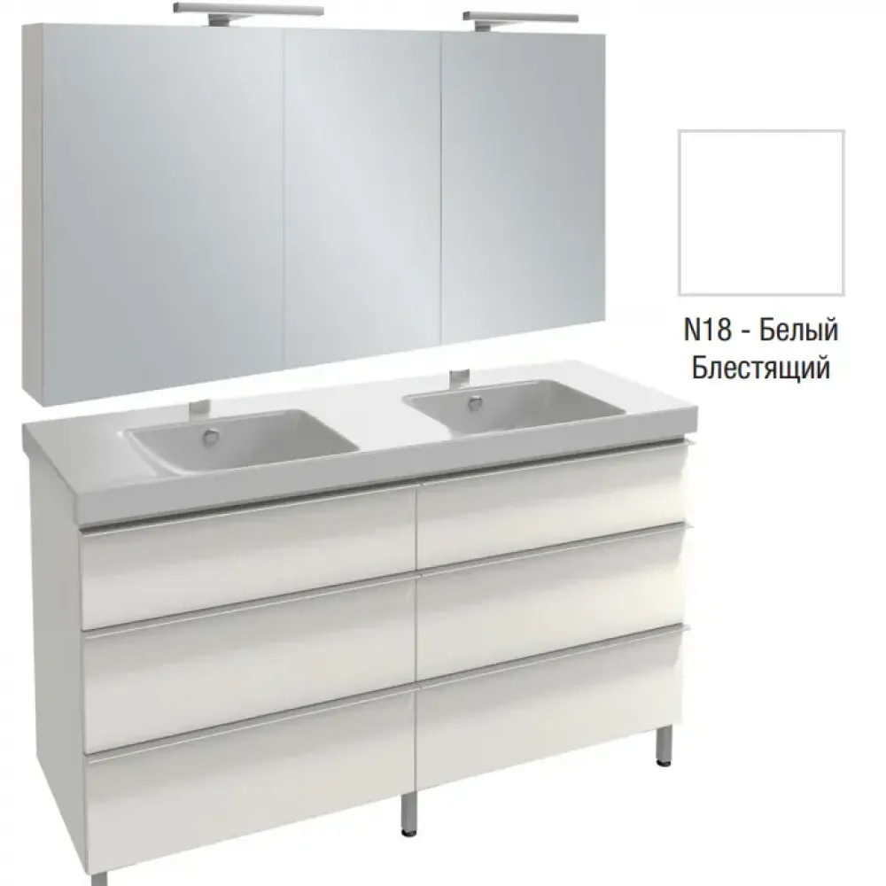 Комплект мебели для ванной Odeon Up 140 см, белый меламин, 6 выдвижных ящиков, с двойными дверцами, подвесной монтаж, с подсветкой E4779-00+EB789RU-N18+EB996-N18 Jacob Delafon