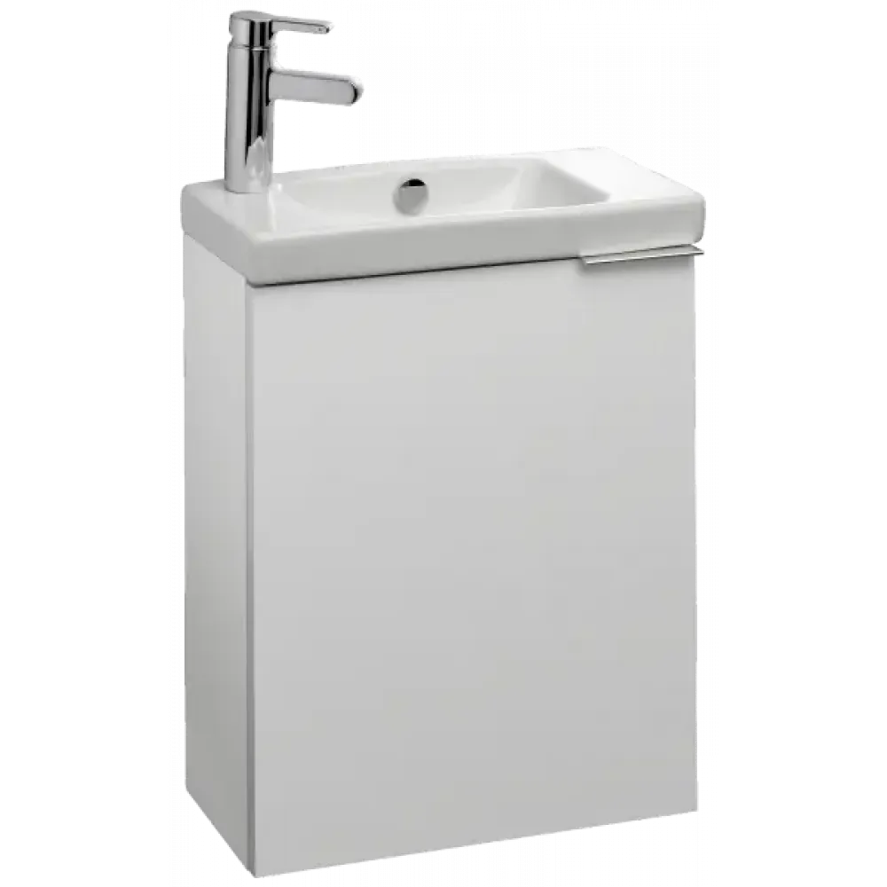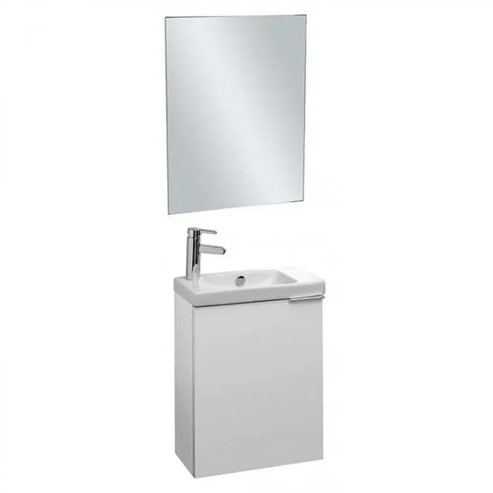 Комплект мебели для ванной Odeon Up 50 см, блестящий белый, реверсивная дверца, внутренний ящик, подвесной монтаж E4701-00+EB1081-NF+EB863-N18 Jacob Delafon
