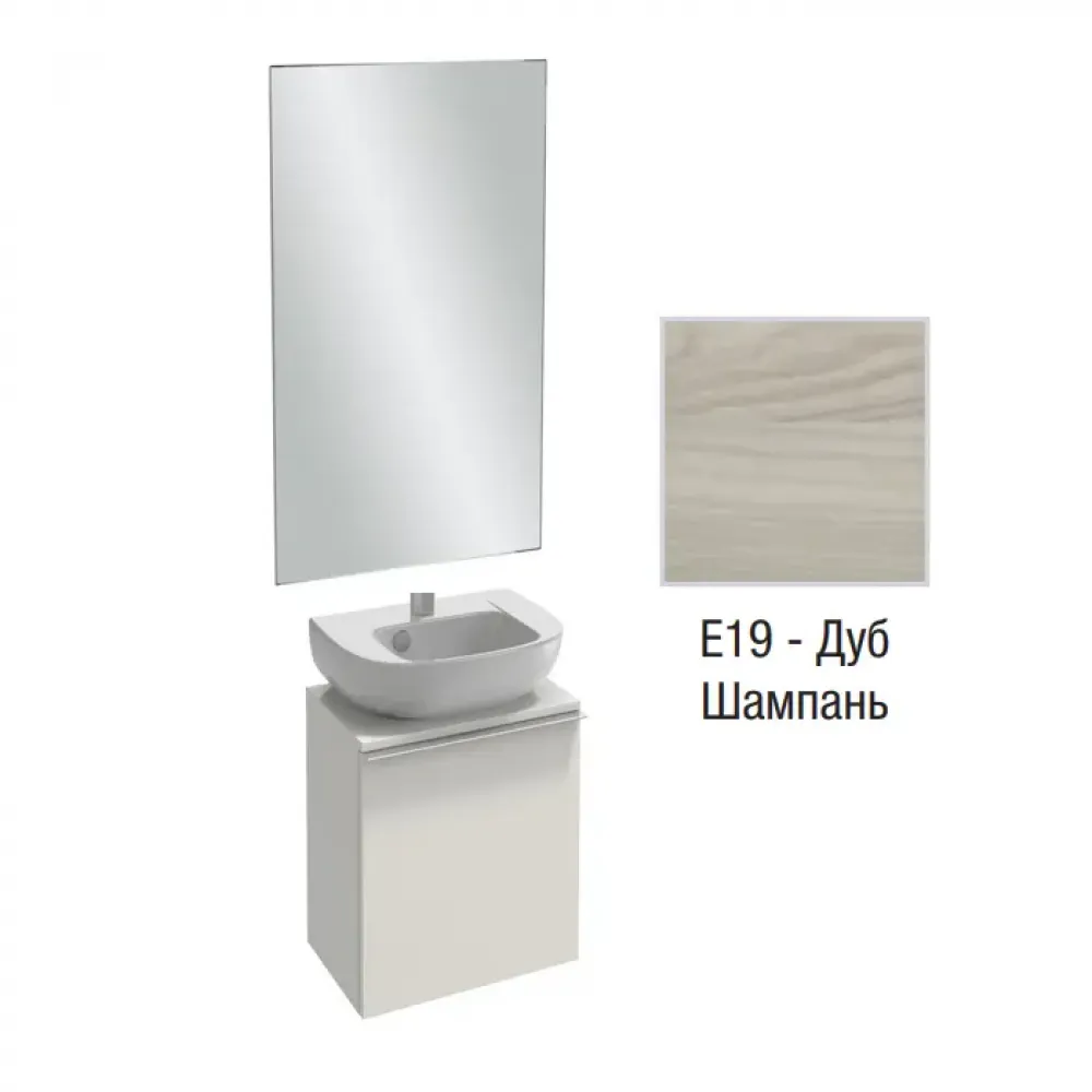 Технические характеристики Комплект мебели для ванной Odeon Up 50 см, дуб шампань, высокое зеркало, отверстие для смесителя, подвесной монтаж EB1081-NF+E4760-00+EB999D-E19 Jacob Delafon