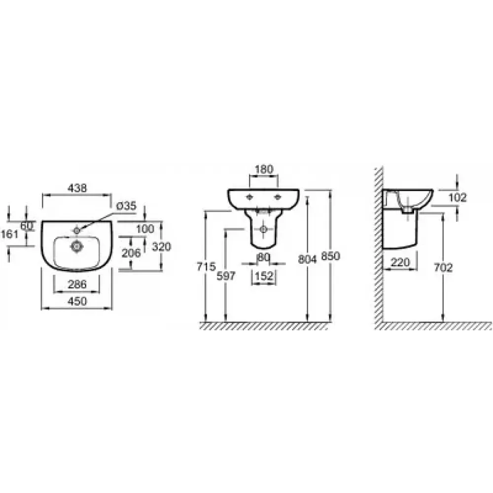 Смеситель и раковина заказываются отдельно. Установщику понадобится набор крепежей для монтажа на стену.