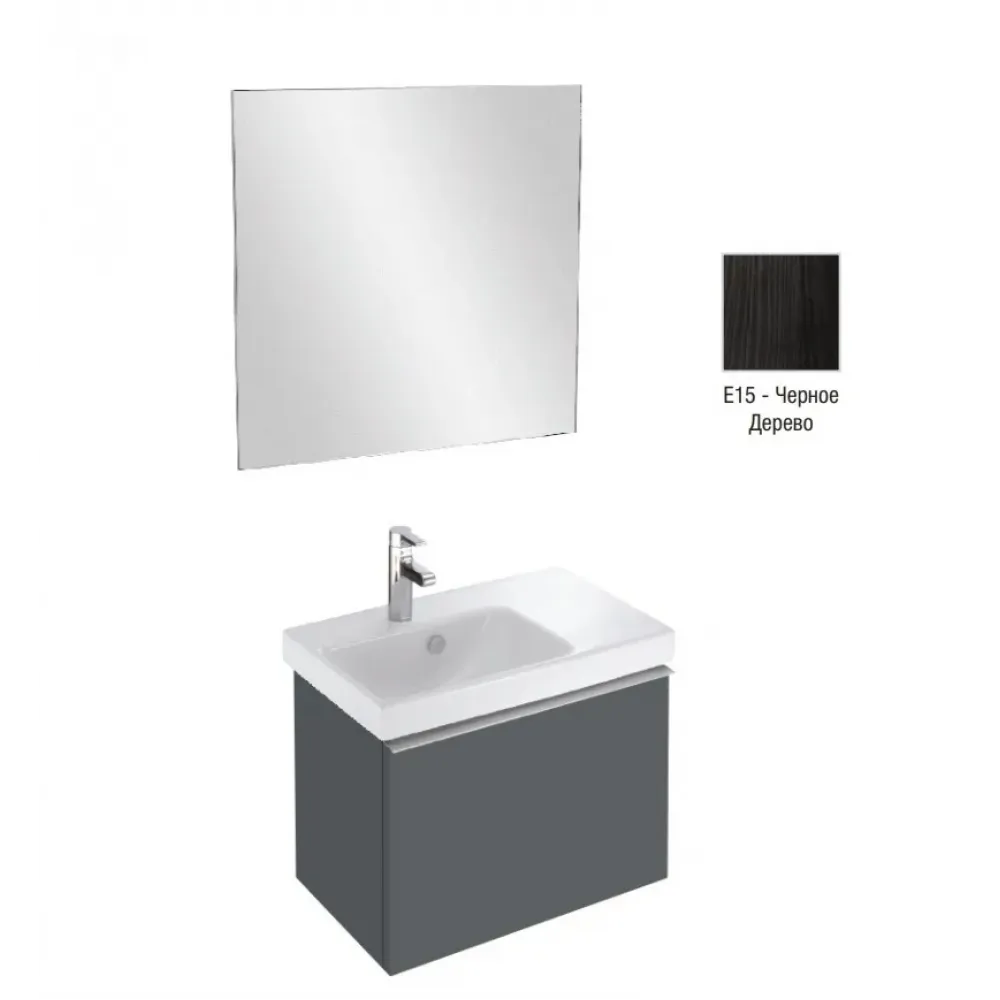 Комплект мебели для ванной Odeon Up 65 см, черное дерево, без подсветки, раковина слева, 1 ящик, подвесной монтаж E4757G-00+EB1080-RU+EB886-E15 Jacob Delafon