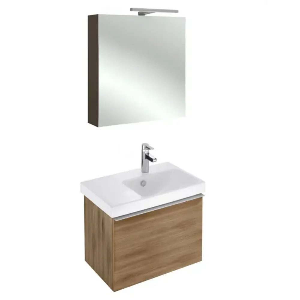 Комплект мебели для ванной Odeon Up 65 см, квебекский дуб, 1 выдвижной ящик, с левым крылом, зеркальные двойные дверцы, с подсветкой, подвесной монтаж E4758G-00+EB886-E10+EB795DRU-E10 Jacob Delafon