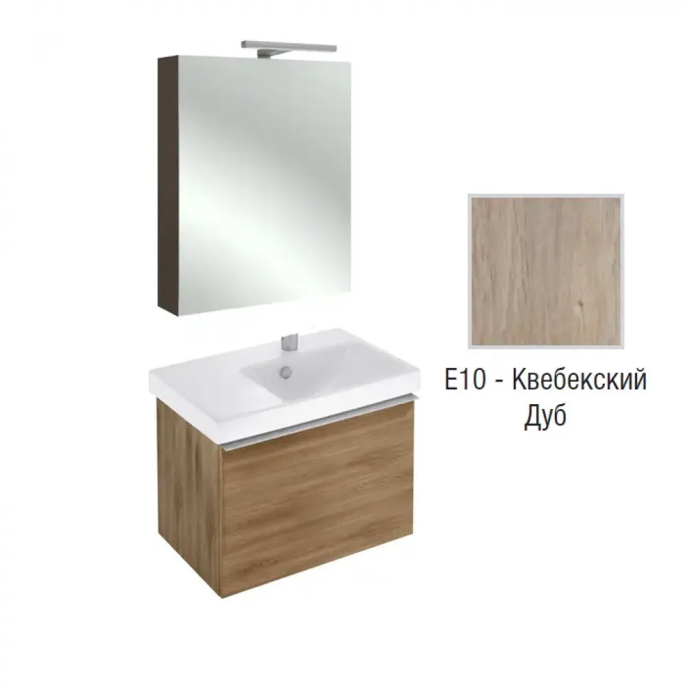 Комплект мебели для ванной Odeon Up 65 см, квебекский дуб, 1 выдвижной ящик, с правым крылом, двойная дверца, с подсветкой, с подсветкой, подвесной монтаж E4757G-00+EB886-E10+EB795DRU-E10 Jacob Delafon