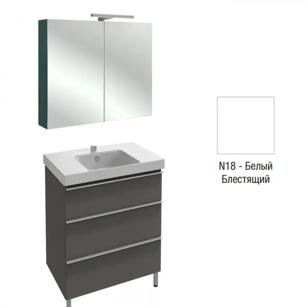 Комплект мебели для ванной Odeon Up 80 см, белый меламин, 3 выдвижных ящика, со светодиодной подсветкой, с подсветкой, подвесной монтаж E4796-00+EB796RU-N18+EB993-N18 Jacob Delafon