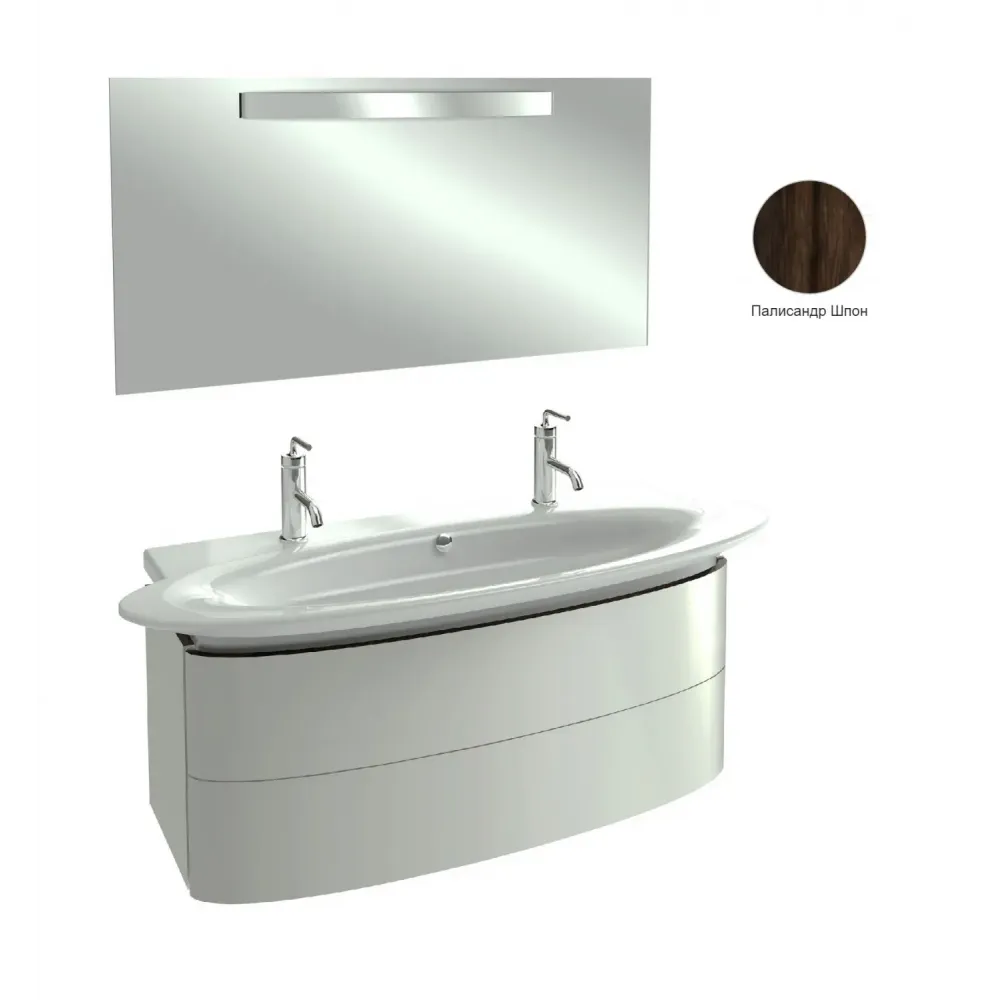 Комплект мебели для ванной Presqu'ile 130 см, палисандр шпон, 2 ящика, 2 отверстия для смесителя, с подсветкой, подвесной монтаж EB1110-NF+E4445-00+EB1105-V13 Jacob Delafon