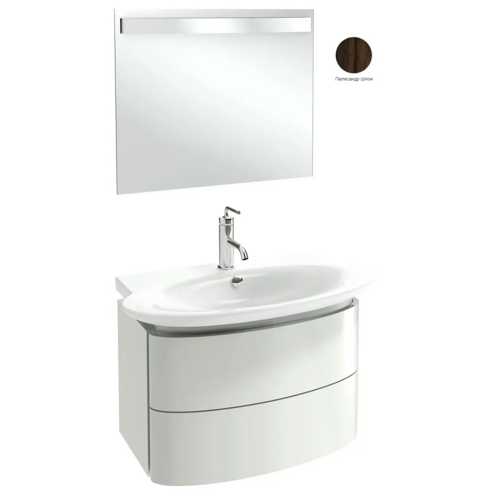 Комплект мебели для ванной Presqu'ile 80 см, палисандр шпон, 2 ящика, зеркало с подсветкой, 1 отверстие для смесителя, с подсветкой, подвесной монтаж E4437-00+EB1103-V13+EB1108-NF Jacob Delafon