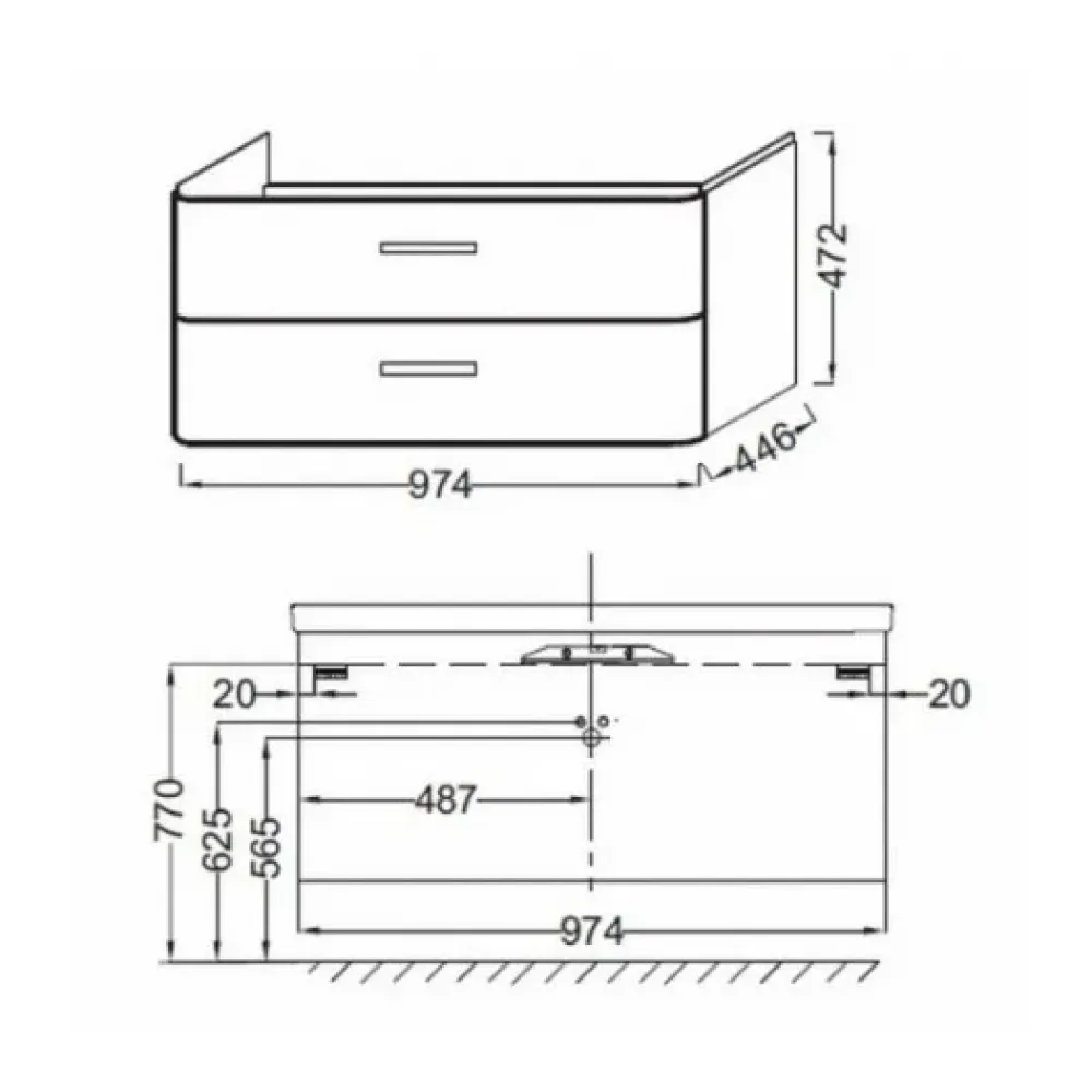 Размеры тумбы: 97,50 x 45 x 47 см