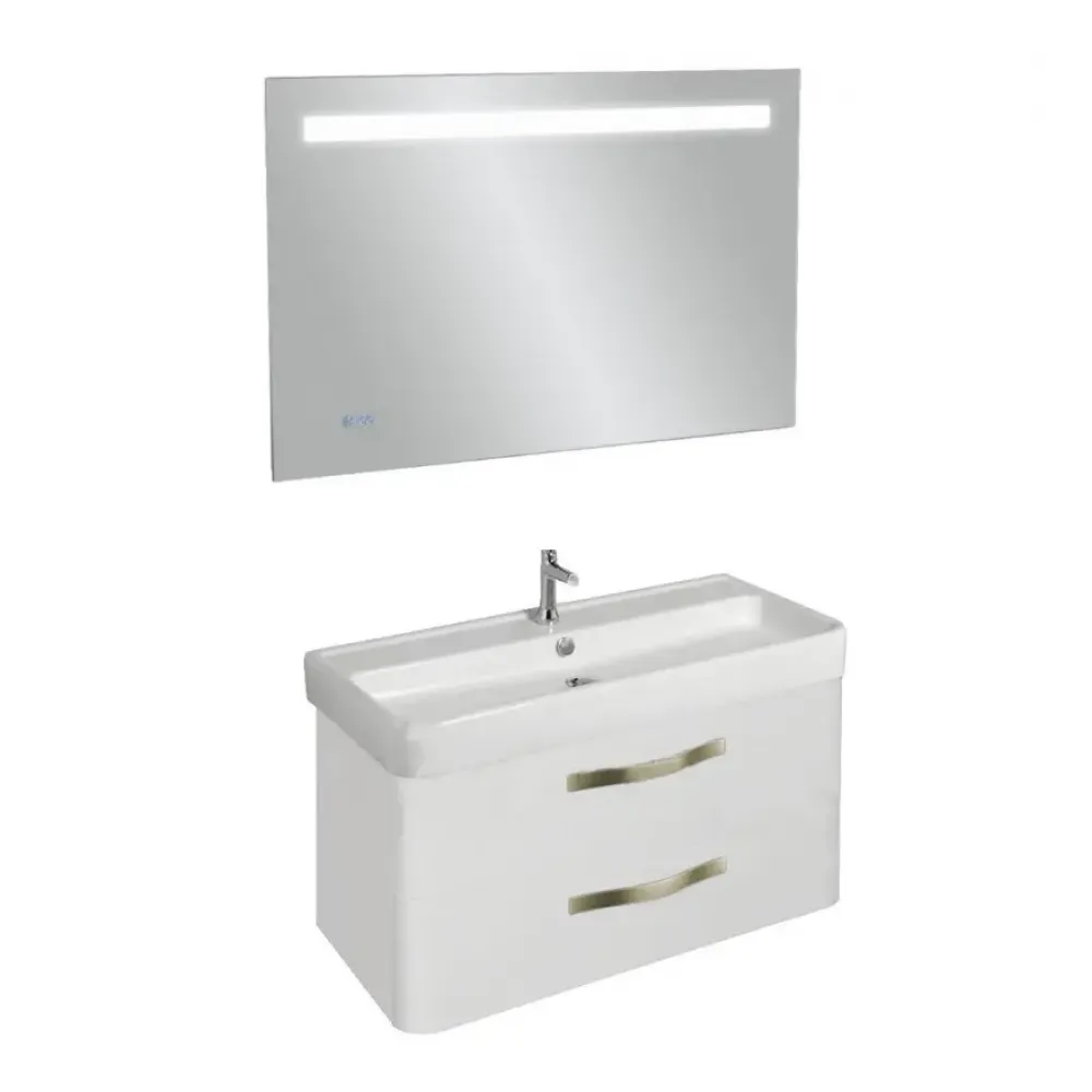 Комплект мебели для ванной Replay 100 см, белый, с 2 ящиками, с подсветкой, подвесной монтаж E4491-00+EB1161-NF+EB1047-G1C Jacob Delafon