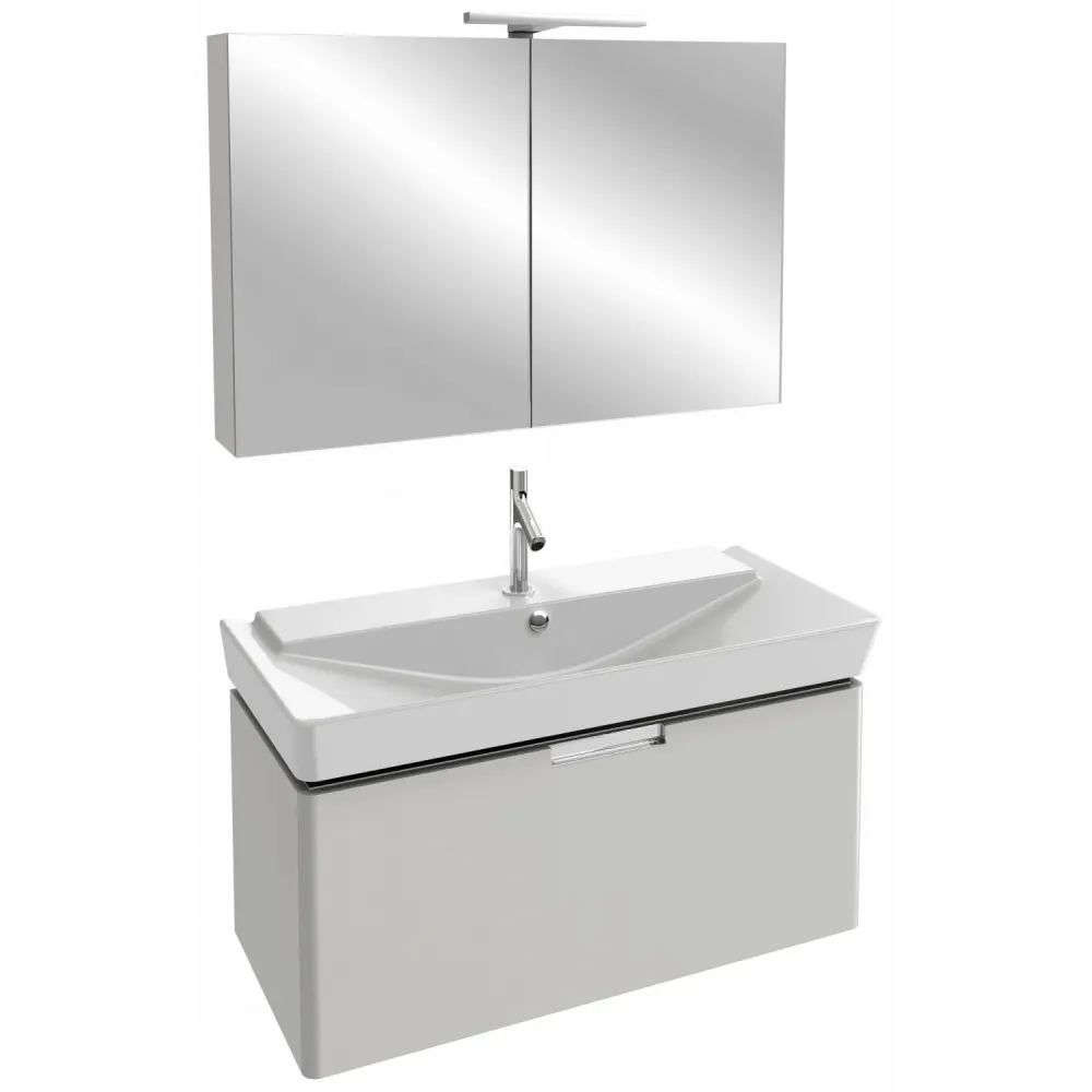 Комплект мебели для ванной Reve 100 см, светло-коричневый блестящий, 1 выдвижной ящик, с подсветкой, с подсветкой, подвесной монтаж E4801-00+EB1132-G80+EB797RU-G80 Jacob Delafon