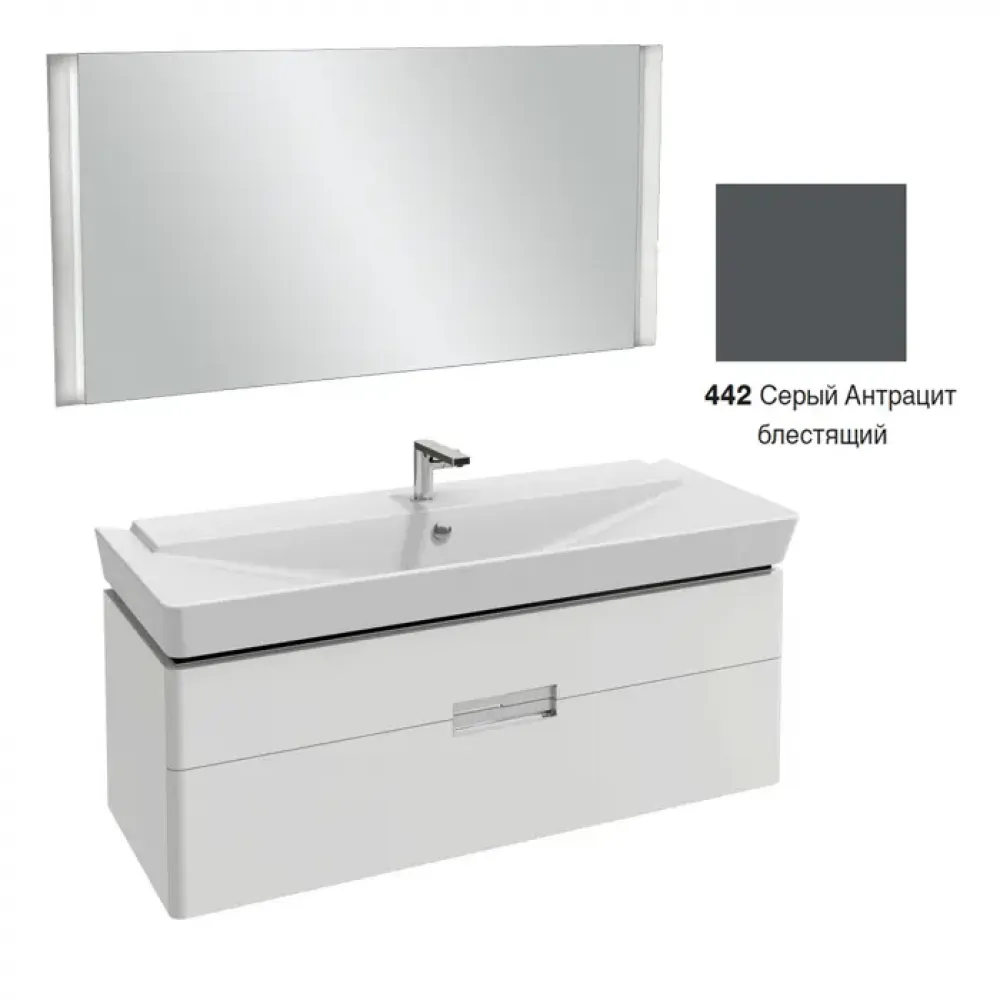 Комплект мебели для ванной Reve 120 см, серый антрацит, 2 выдвижных ящика, с двумя отверстиями под смеситель, с подсветкой, подвесной монтаж EB577-NF+E4824-00+EB1137-442 Jacob Delafon