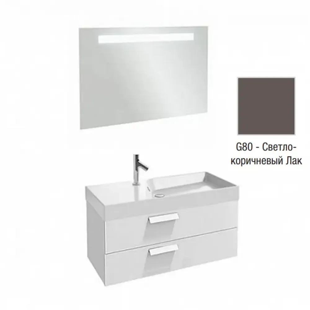 Комплект мебели для ванной Rythmik 100 см, светло-коричневый блестящий, 2 выдвижных ящика, полотно, с подсветкой, подвесной монтаж EB1161-NF+EXN112-Z-00+EB1304-G80 Jacob Delafon