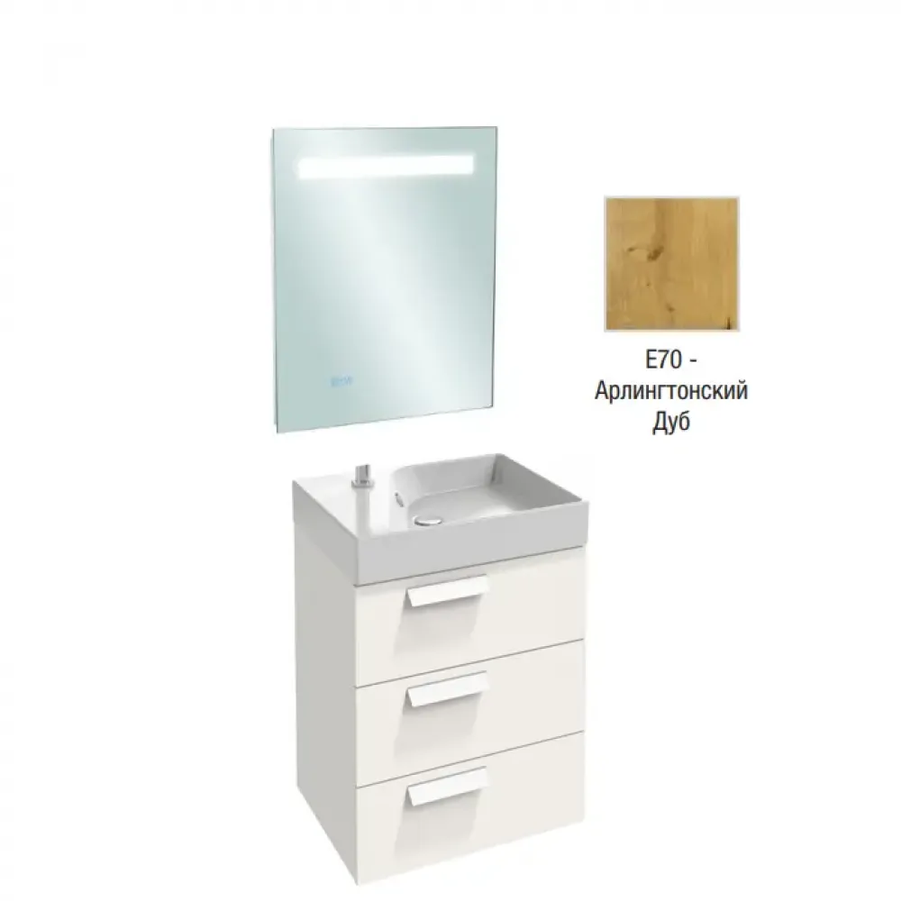 Технические характеристики Комплект мебели для ванной Rythmik 60 см, арлингтонский дуб, 3 выдвижных ящика, полотно, с подсветкой, подвесной монтаж EB1158-NF+EXR112-Z-00+EB1306-E70 Jacob Delafon