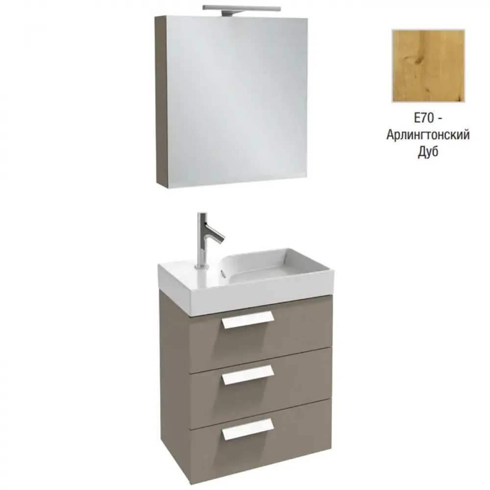 Комплект мебели для ванной Rythmik 60 см, арлингтонский дуб, 3 ящика. правостороннее зеркало, с подсветкой, подвесной монтаж EXQ112-Z-00+EB1307-E70+EB795DRU-E70 Jacob Delafon