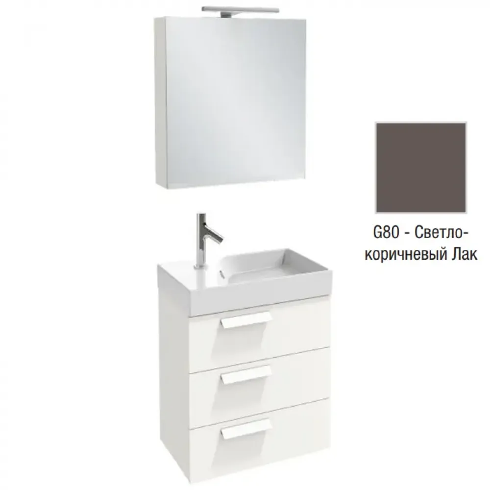 Комплект мебели для ванной Rythmik 60 см, шкаф-зеркало с подсветкой, светло-коричневый лак, с подсветкой, подвесной монтаж EXR112-Z-00+EB1306-G80+EB795DRU-G80 Jacob Delafon
