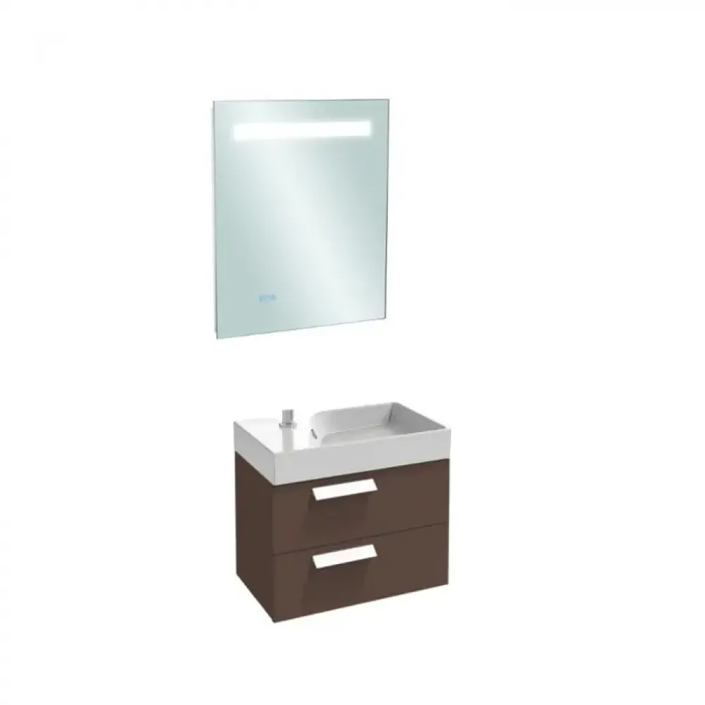 Технические характеристики Комплект мебели для ванной Rythmik 60 см, светло-коричневый лак, подсветка зеркала, анти-пар и часы, с подсветкой, подвесной монтаж EB1158-NF+EXR112-Z-00+EB1300-G80 Jacob Delafon